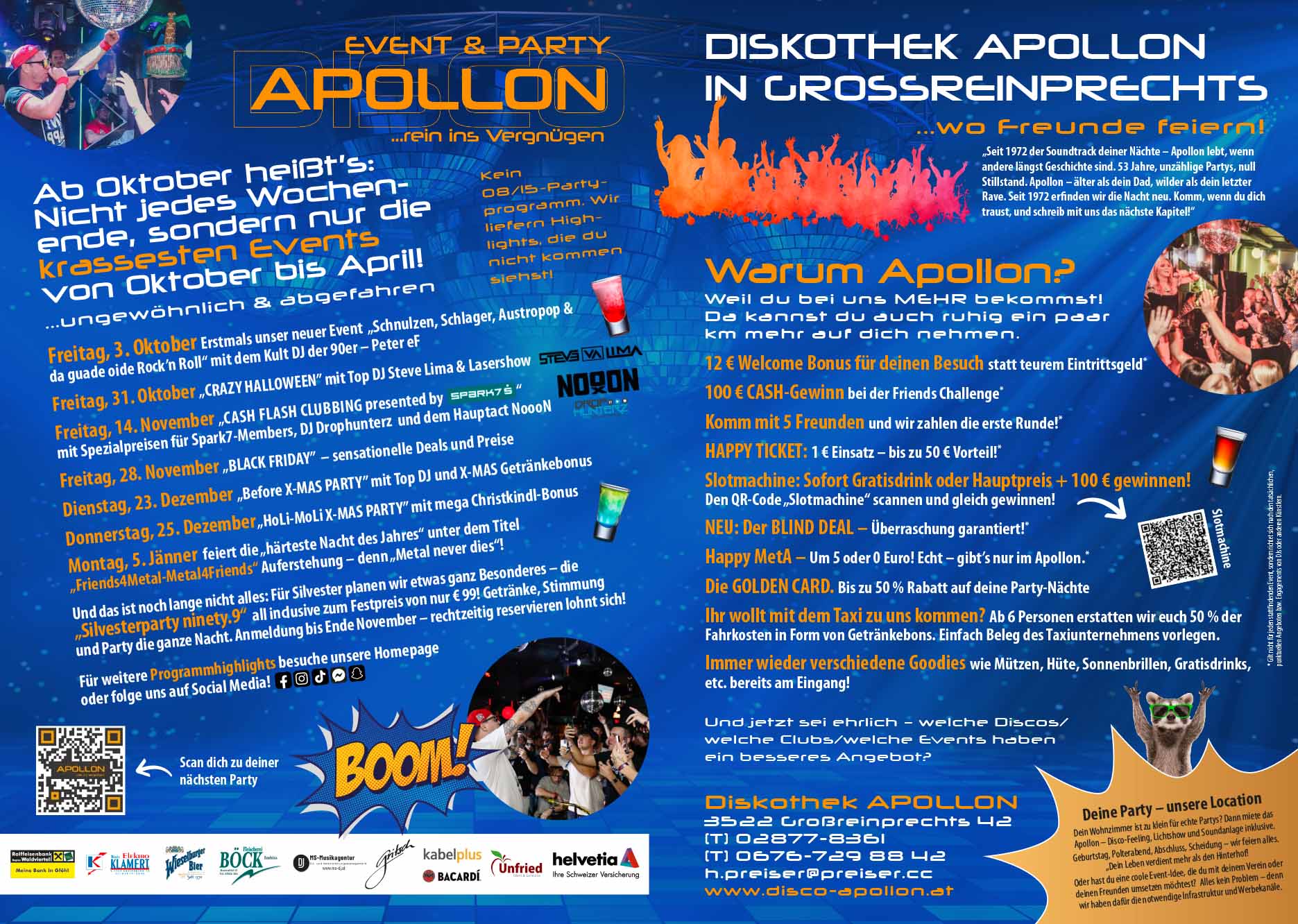 Mit deinem Besuch in unserer Disco akzeptierst du, dass im Lokal Fotos und Videos von dir gemacht werden und diese auf der Homepage, auf facebook, Instagram, DiscoApollon App und den Monitoren im Lokal veröffentlicht werden dürfen.Weiters bist du mit der automatisierten Erfassung und Verwendung deiner Daten gemäß der verlinkten Einwilligungserklärung einverstanden.